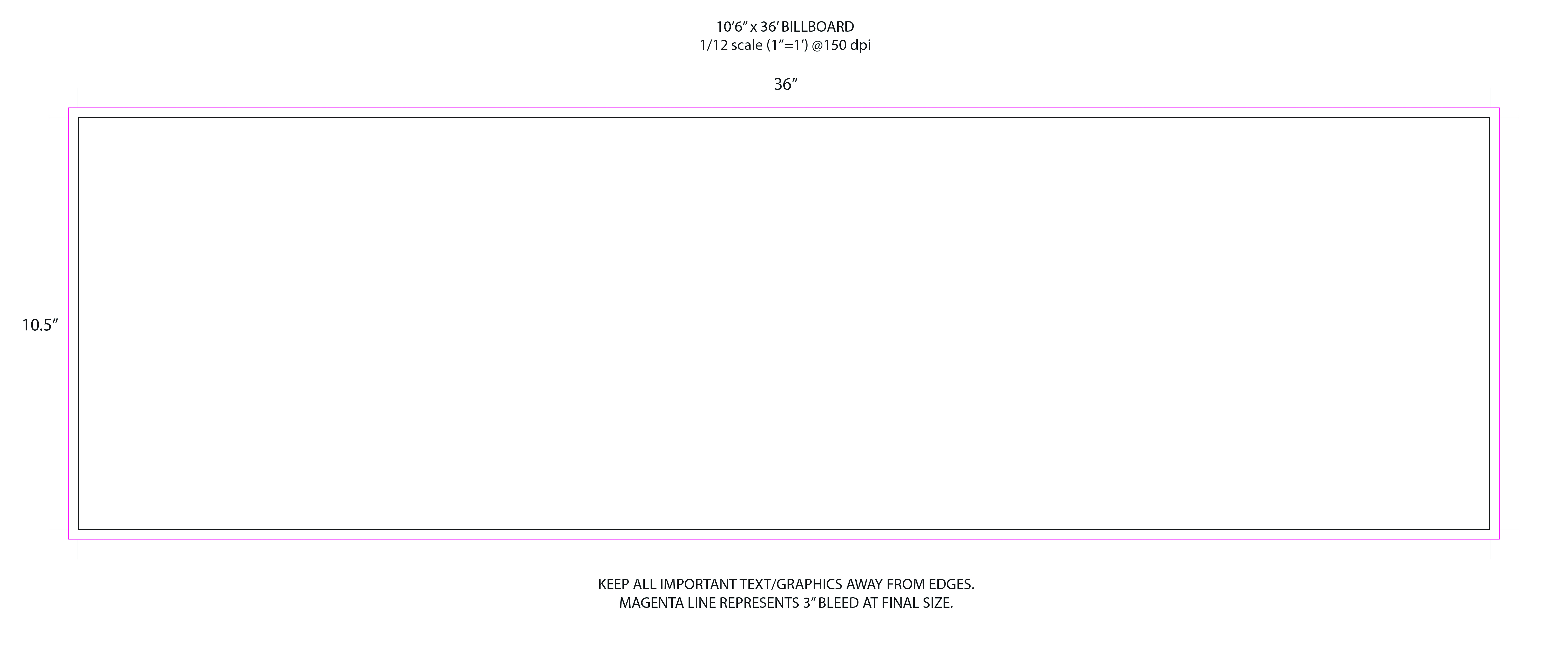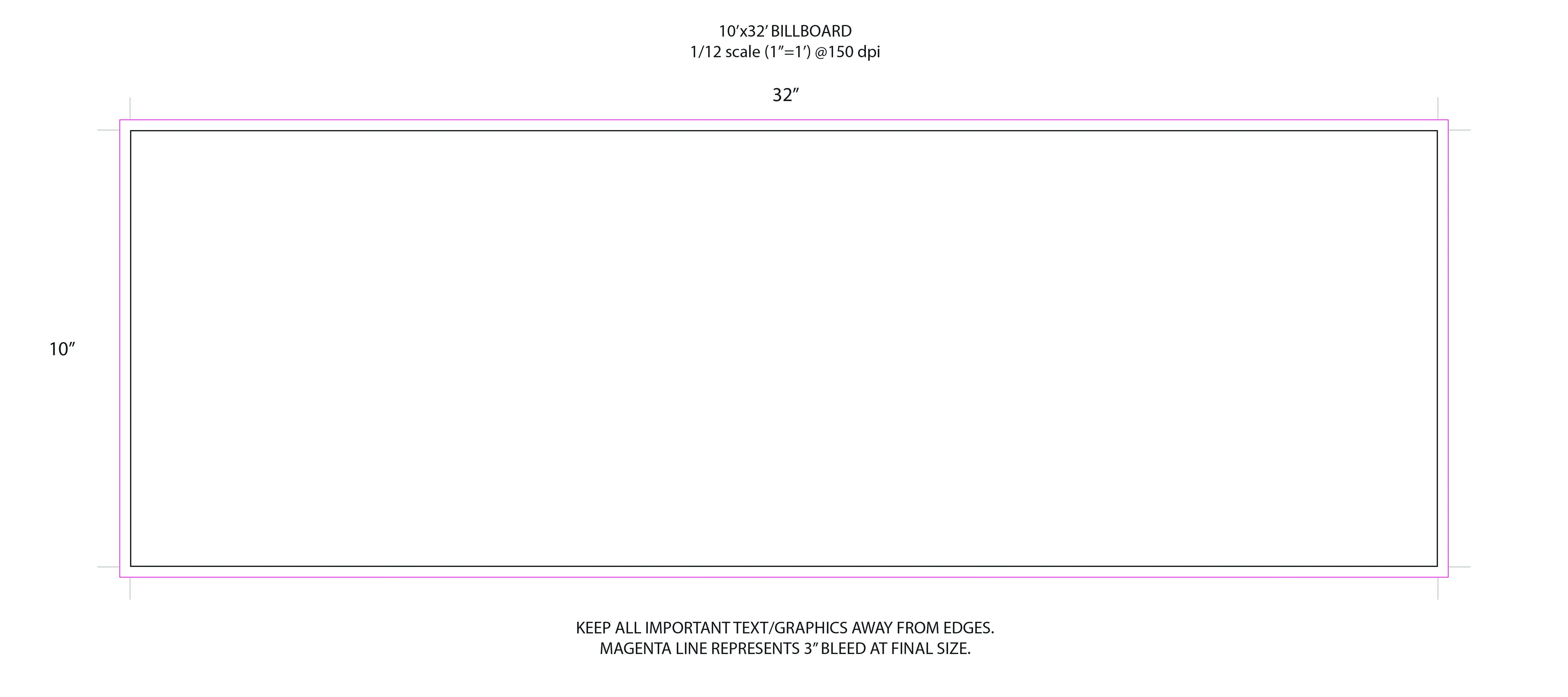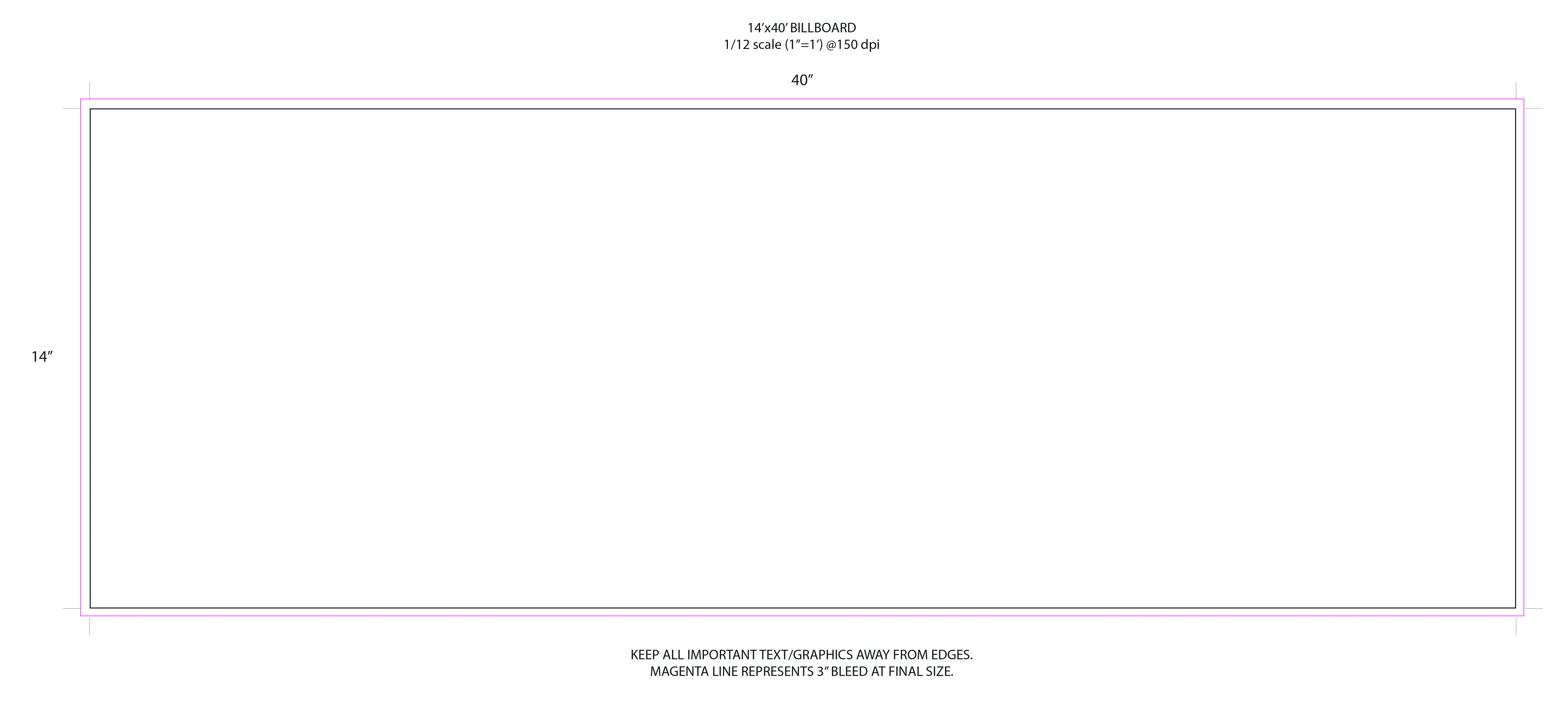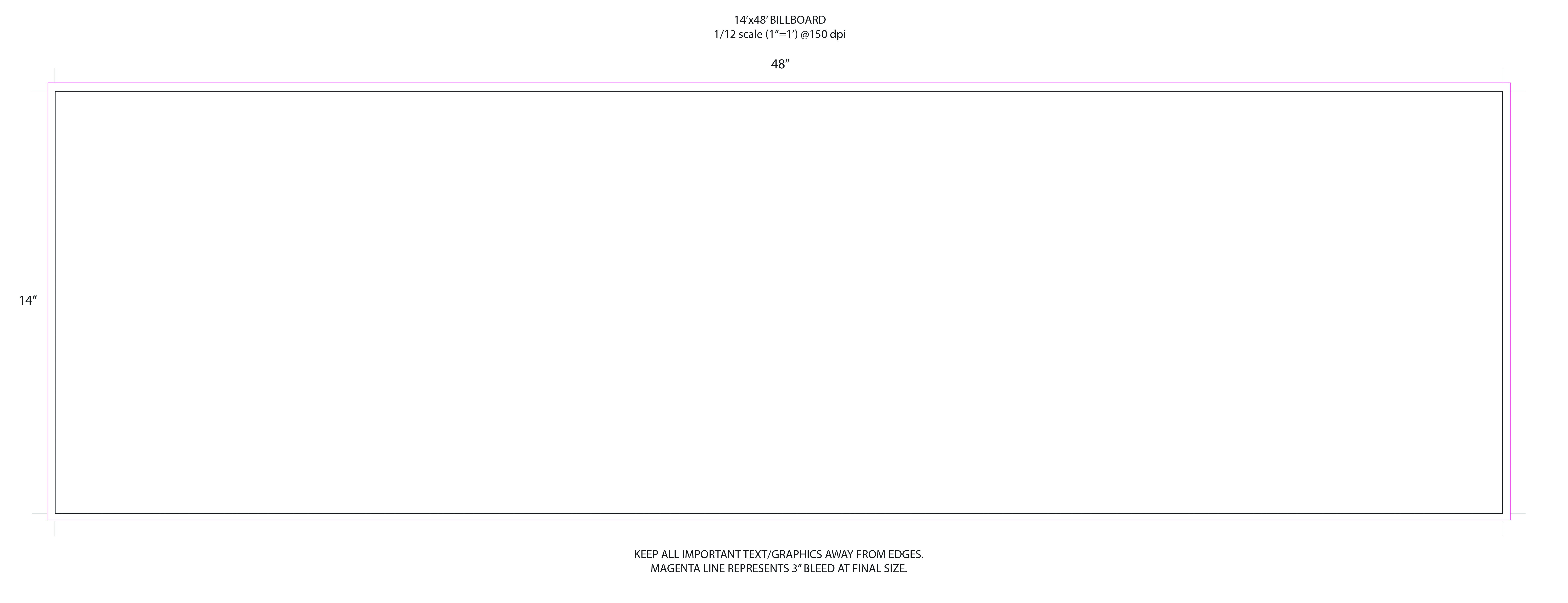 If you are creating your own design, we have some resources to get you started. Click below to browse our collection of billboard templates. Just open the file in your preferred design program and build right on top of it. This will give you the correct dimensions for your artwork, and indicate any special considerations that need to be made. For example, all printed billboard designs need to include bleed. This refers to the artwork bleeding out of the visible area, into the area that isn’t meant to be seen (a safety measure). Any templates that require such a bleed to be included clearly show the area, making it easy to include.
