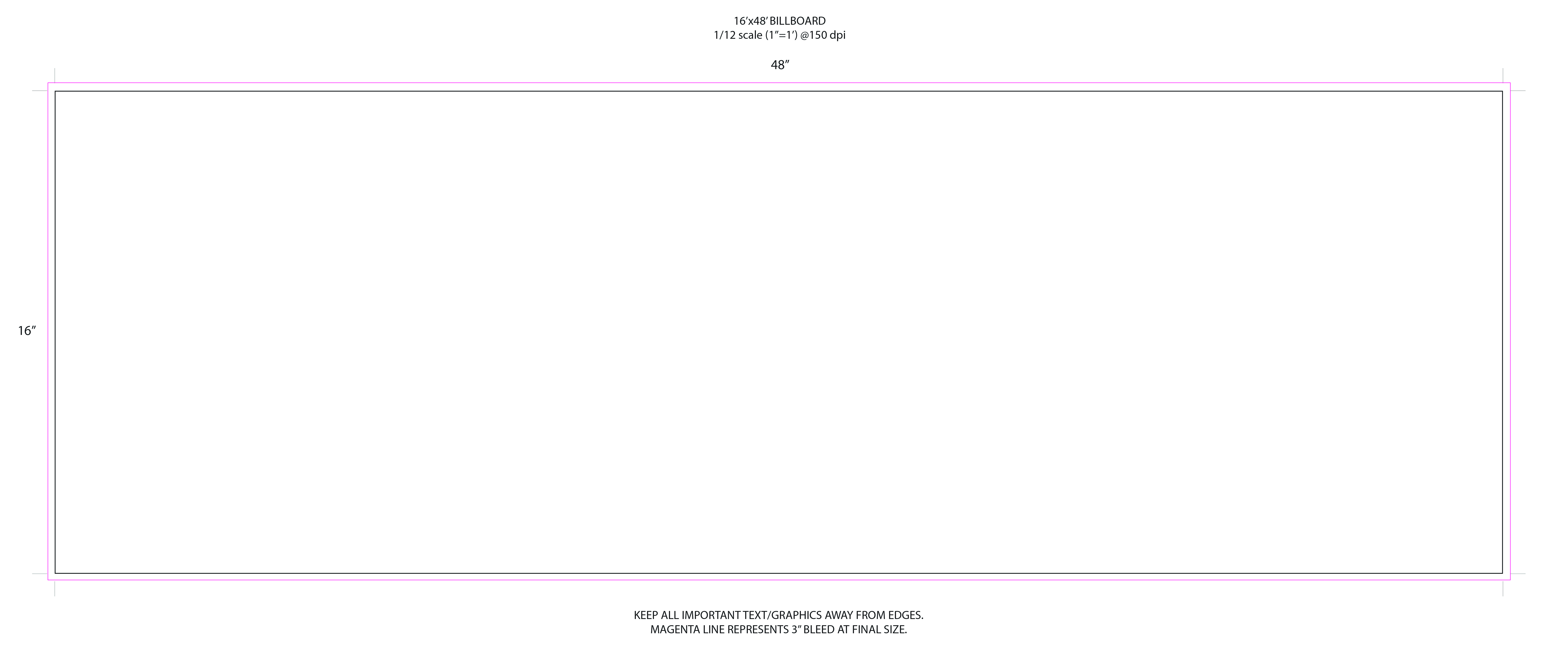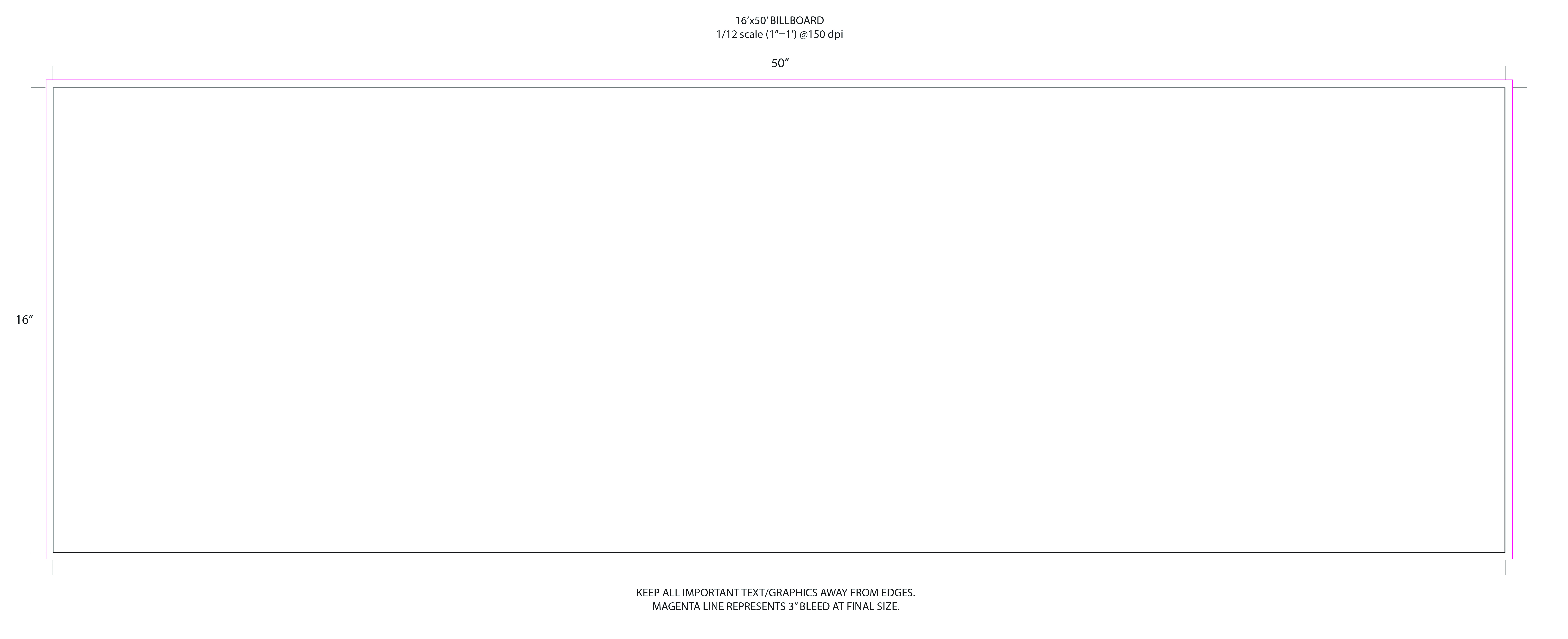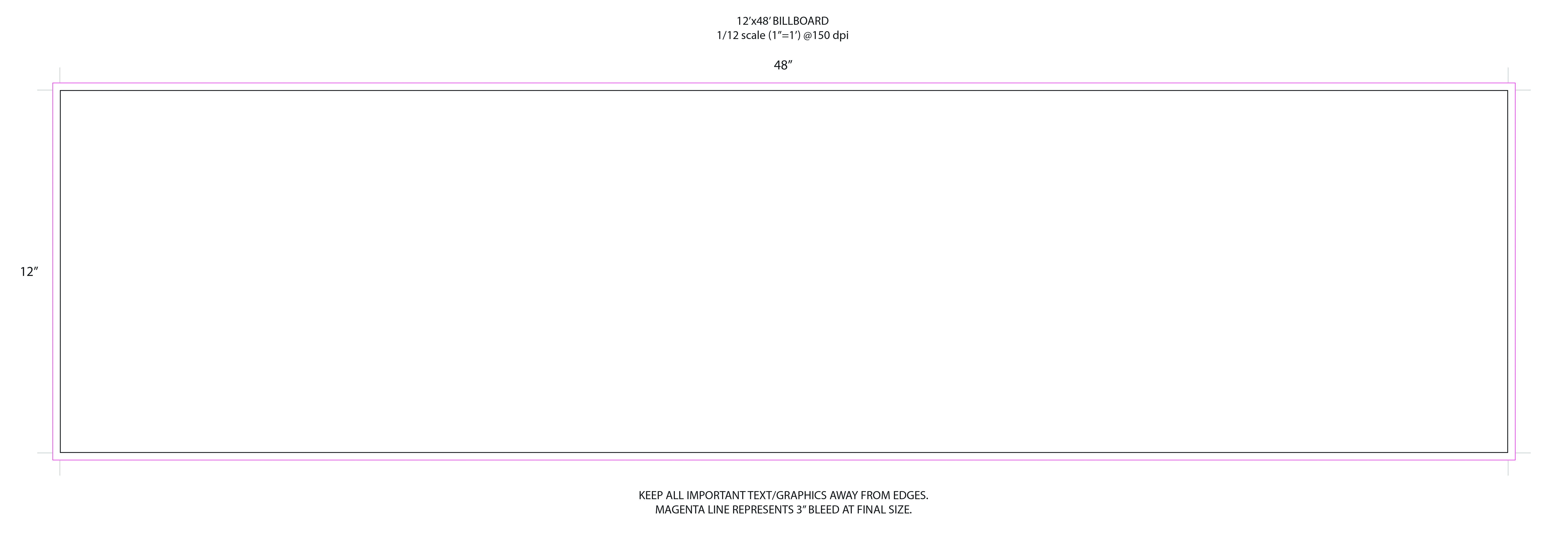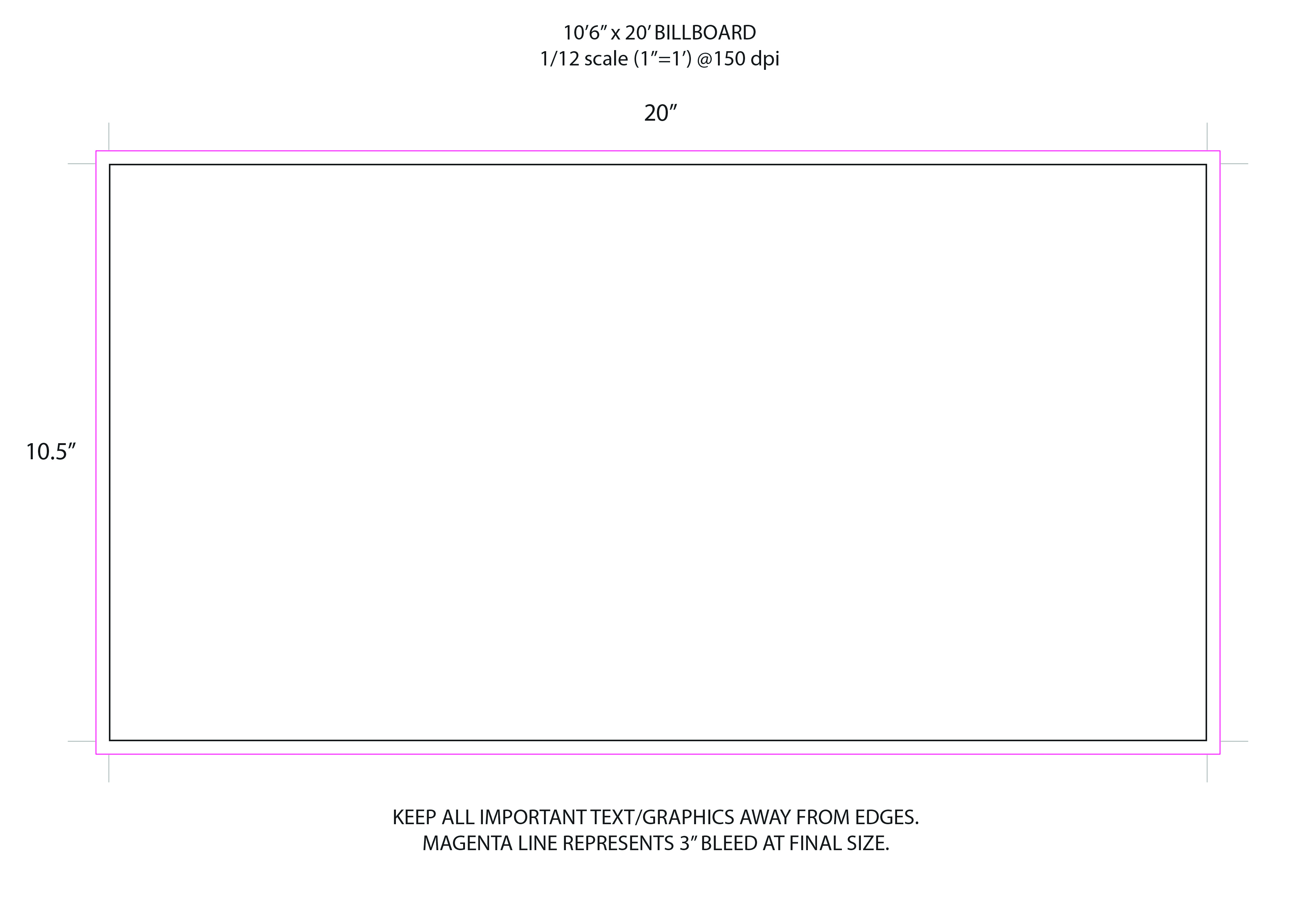 If you are creating your own design, we have some resources to get you started. Click below to browse our collection of billboard templates. Just open the file in your preferred design program and build right on top of it. This will give you the correct dimensions for your artwork, and indicate any special considerations that need to be made. For example, all printed billboard designs need to include bleed. This refers to the artwork bleeding out of the visible area, into the area that isn’t meant to be seen (a safety measure). Any templates that require such a bleed to be included clearly show the area, making it easy to include.