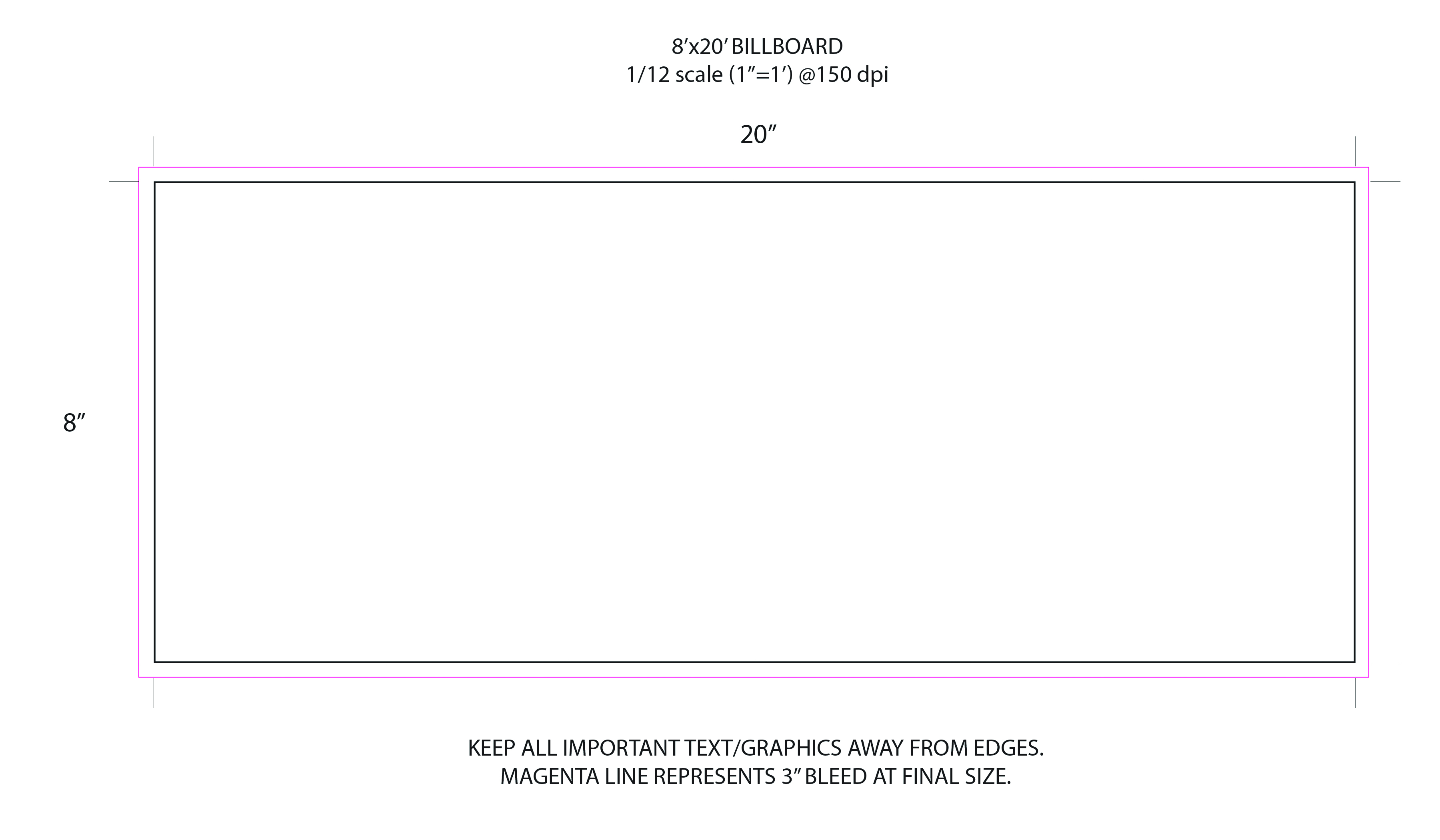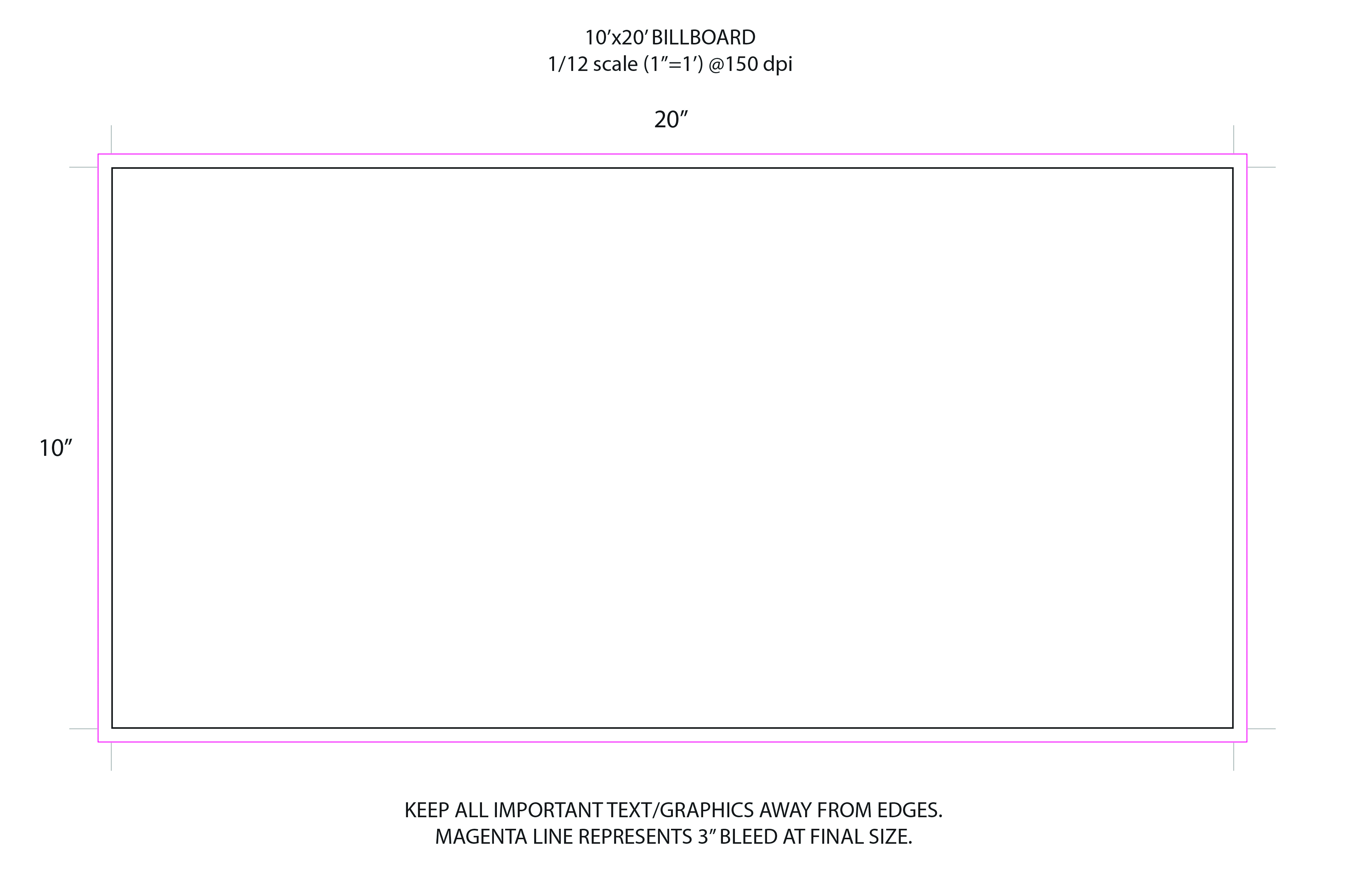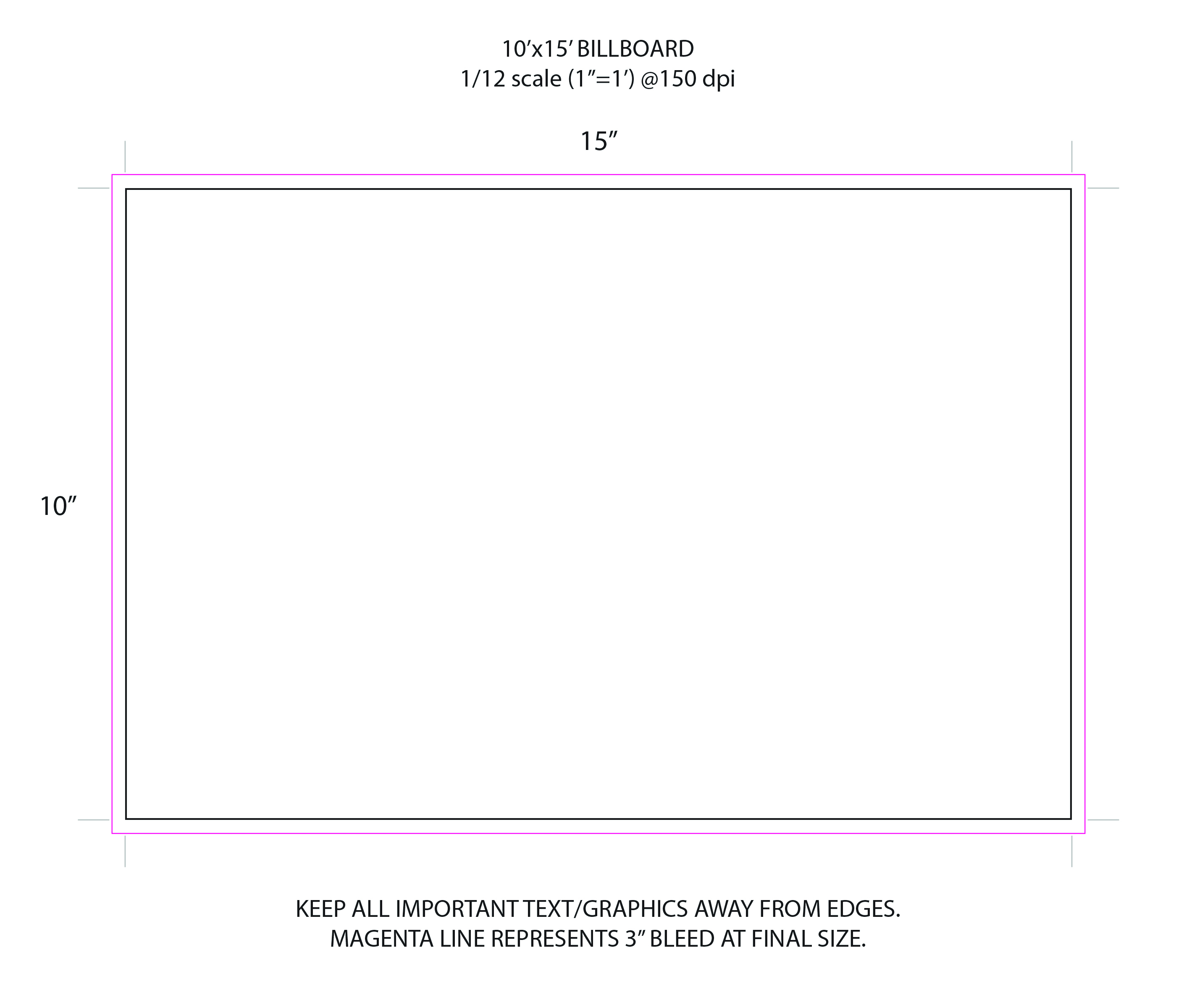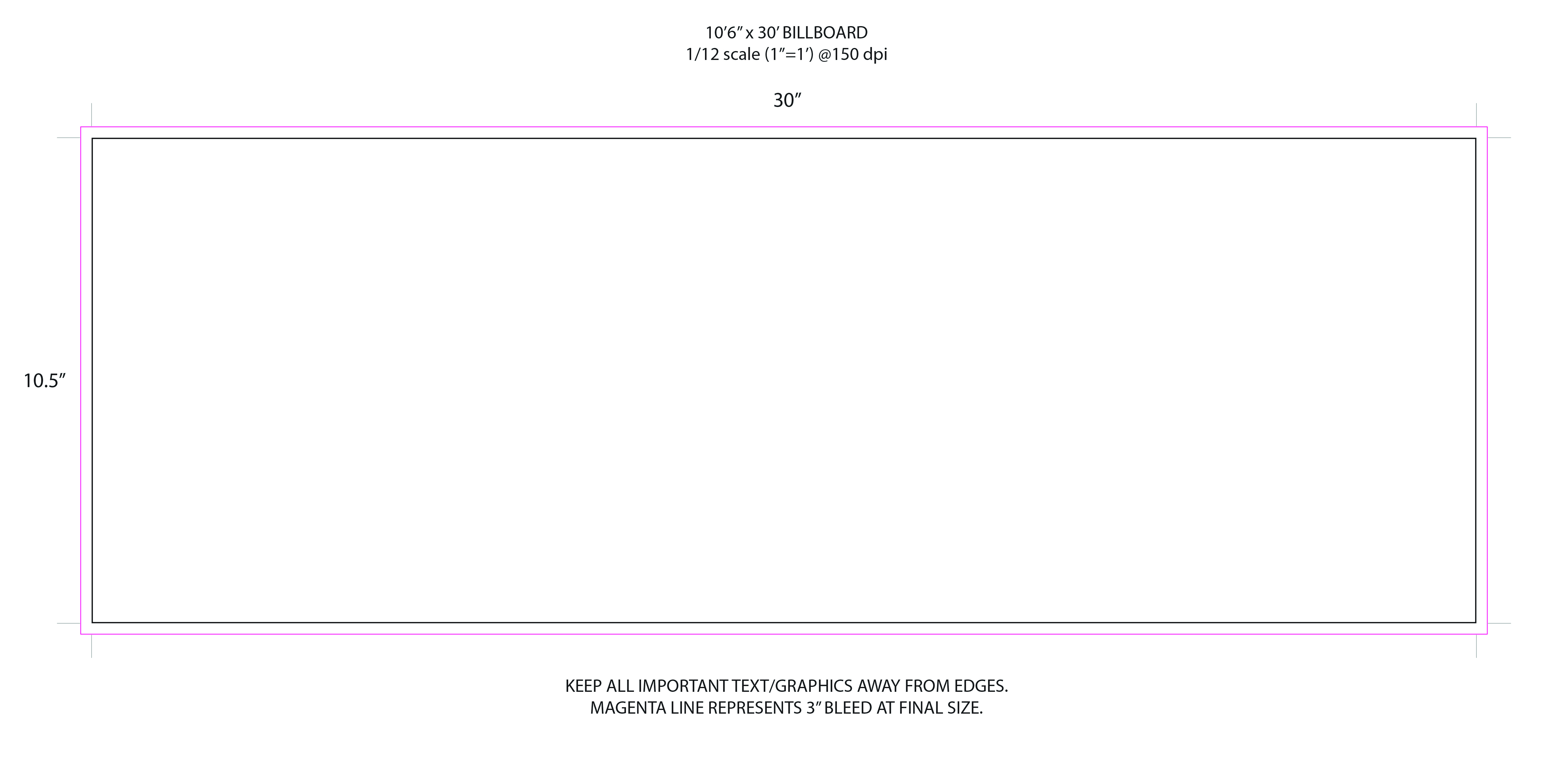 If you are creating your own design, we have some resources to get you started. Click below to browse our collection of billboard templates. Just open the file in your preferred design program and build right on top of it. This will give you the correct dimensions for your artwork, and indicate any special considerations that need to be made. For example, all printed billboard designs need to include bleed. This refers to the artwork bleeding out of the visible area, into the area that isn’t meant to be seen (a safety measure). Any templates that require such a bleed to be included clearly show the area, making it easy to include.